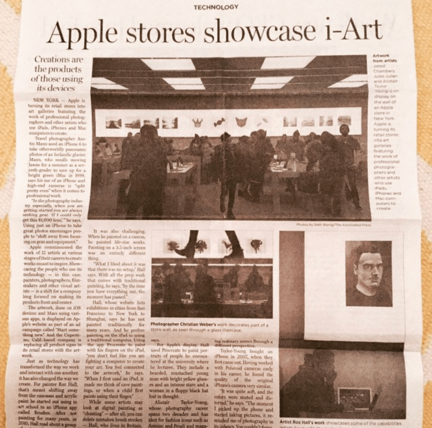 Back in 2015, Apple commissioned me to produce a series of paintings on their iPad Air 2. These portraits were to be exhibited on their website and in Apple Stores around the world, along with artwork by 12 other international artists.