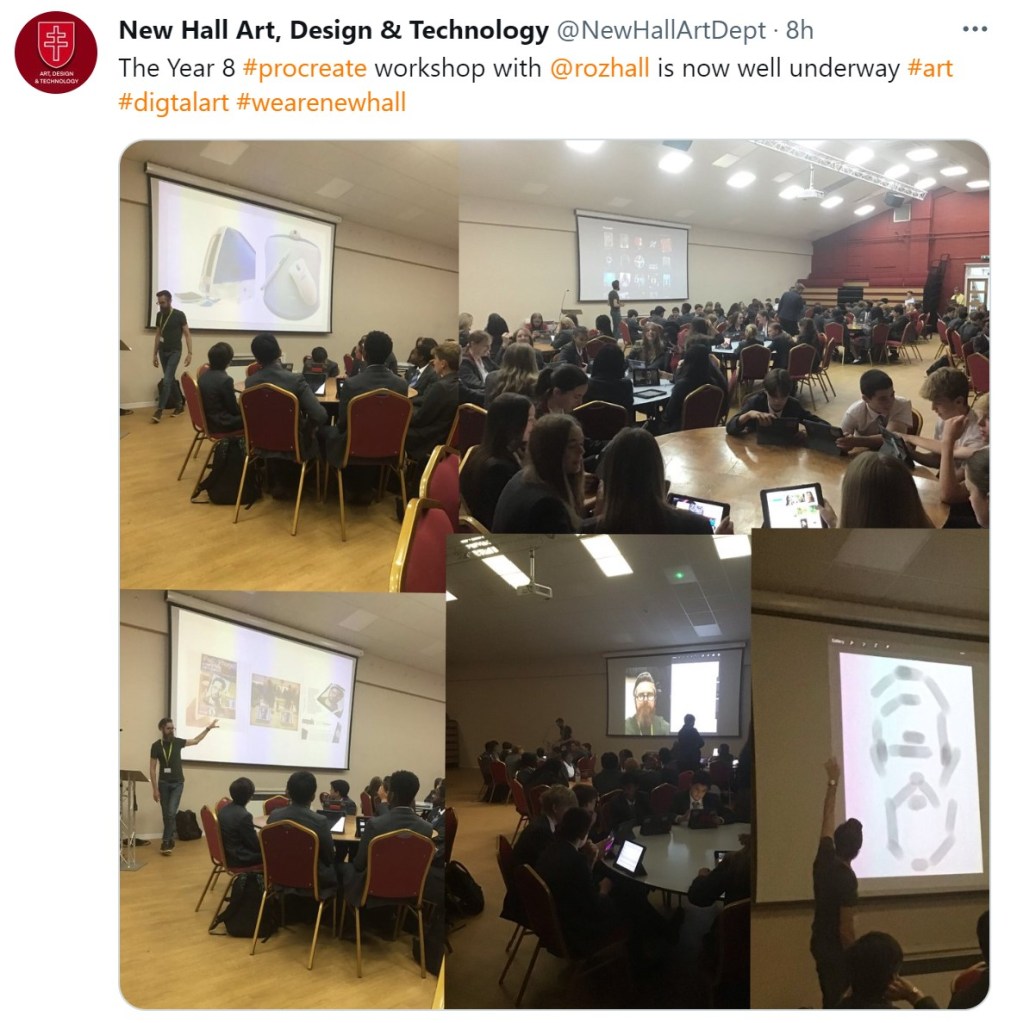 Today I’ve been delivering a series of digital art workshops at New Hall School in Chelmsford. Focussing on both digital painting and 2D digital composition, we took a deep dive into what was possible using the award-winning Procreate app on Apple’s iPad.